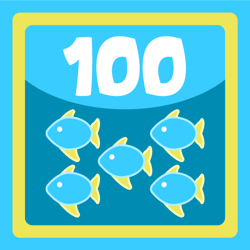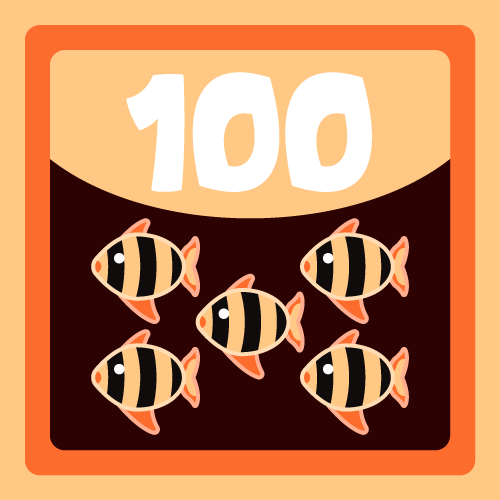 100 fish. Now we talking! Fish are scared of you.